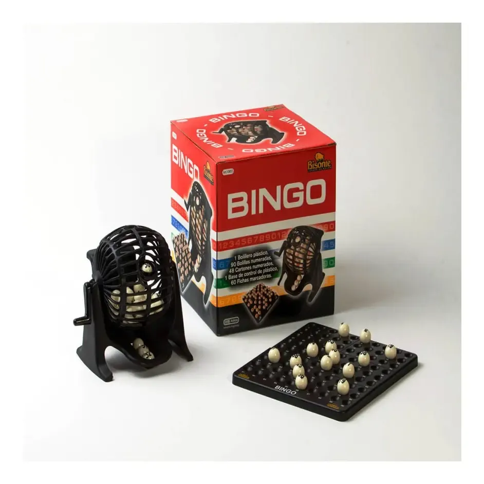 • BINGO DE 90 BOLILLAS CON BOLILLERO Y PORTABOLILLAS DE PLASTICO