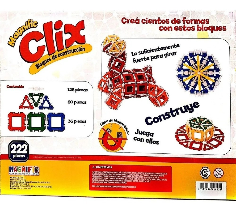 Bloques Didácticos Educativos Magnific clix Original 222 Piezas Juego Juguete Didáctico