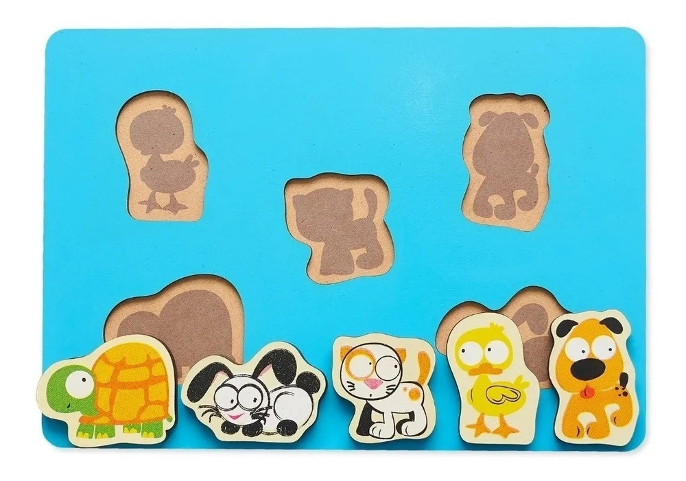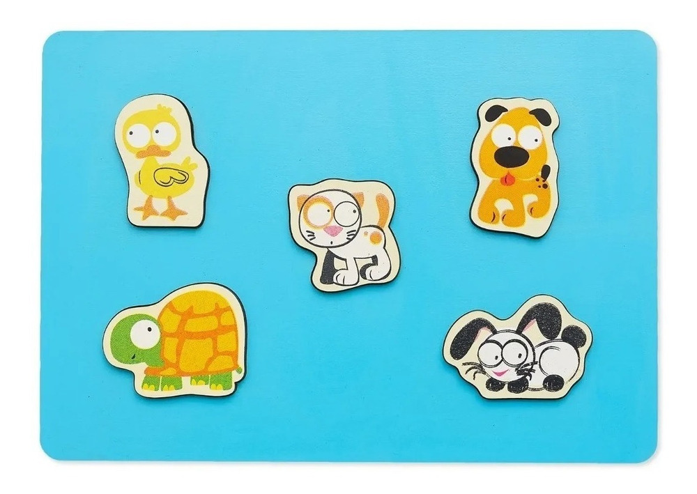 Puzzle Rompecabezas De Madera Animales Mascotas Encastre Juego Juguete Didáctico 5 Piezas Plan Z Juguetes Perro Gato Tortuga Conejo Pollito