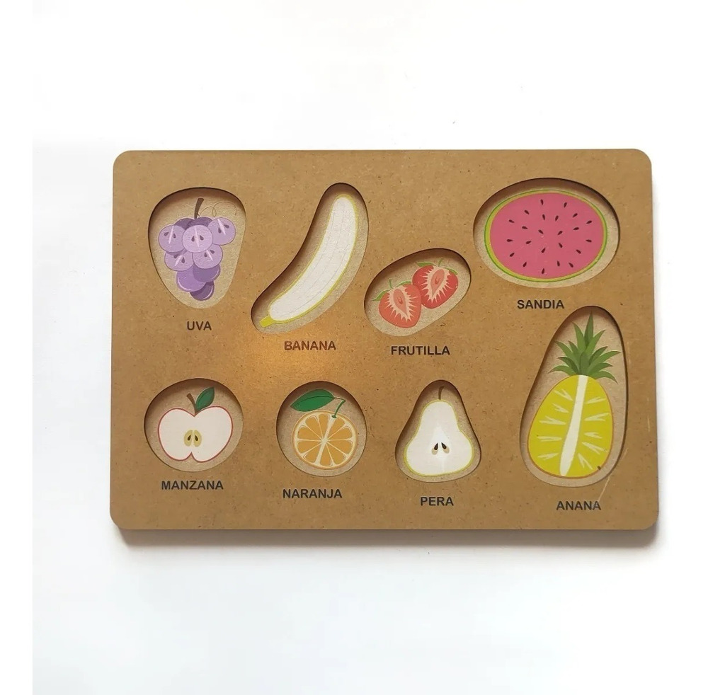 Puzzle Rompecabezas De Madera Frutas Comidas Alimentos Encastre Con Volumen Juego Juguete Didáctico 6 Piezas Plan Z Juguetes Uva Banana Frutilla Sandia Manzana Naranja Pera Ananá
