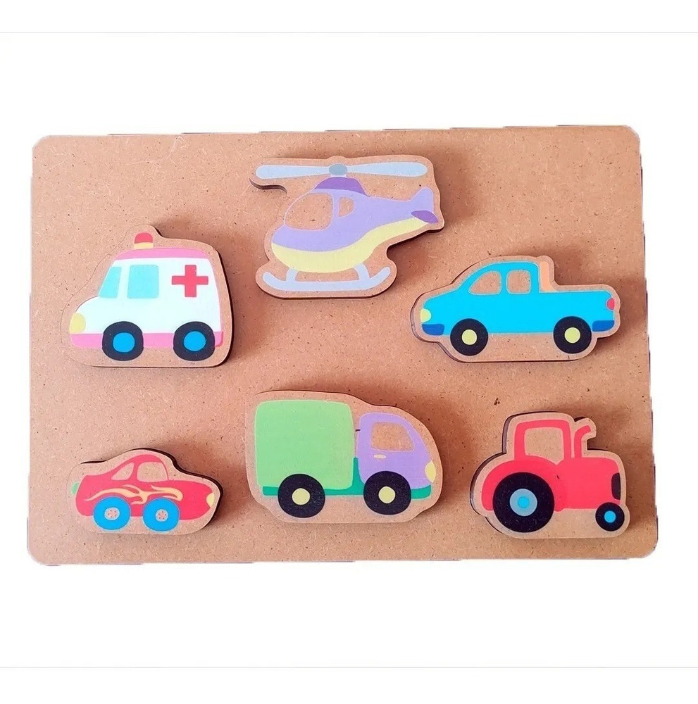 Puzzle Rompecabezas De Madera Vehículos Encastre Con Volumen Juego Juguete Didáctico 6 Piezas Plan Z Juguetes Autos Ambulancia Tractor Helicóptero Camión Camioneta