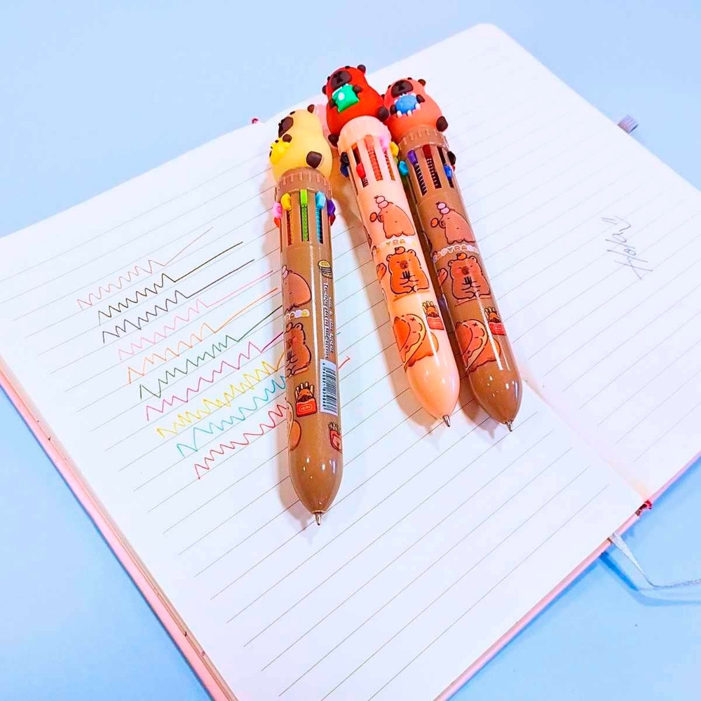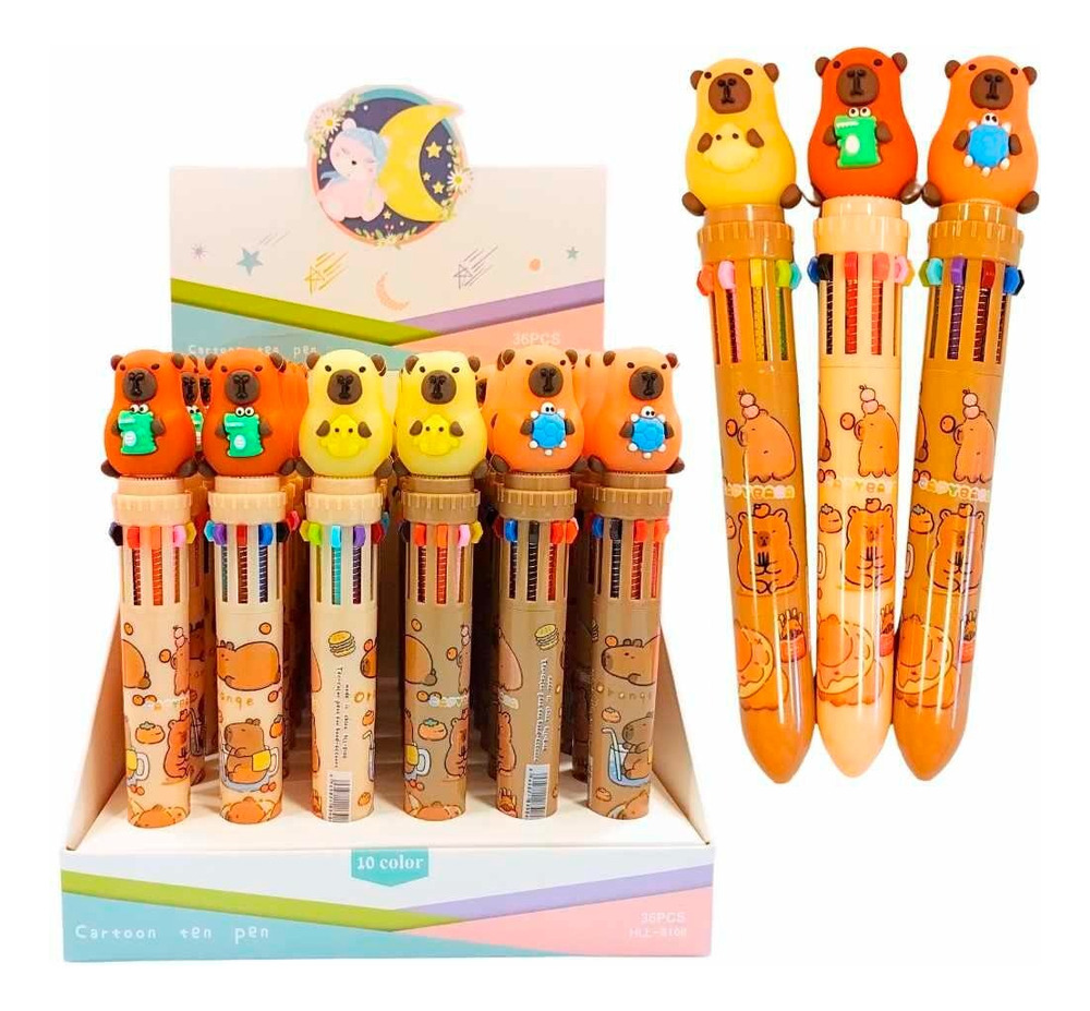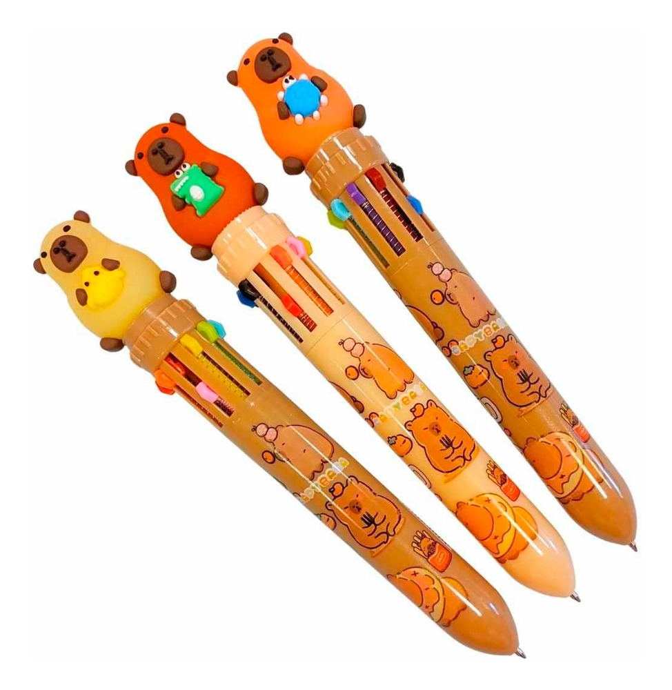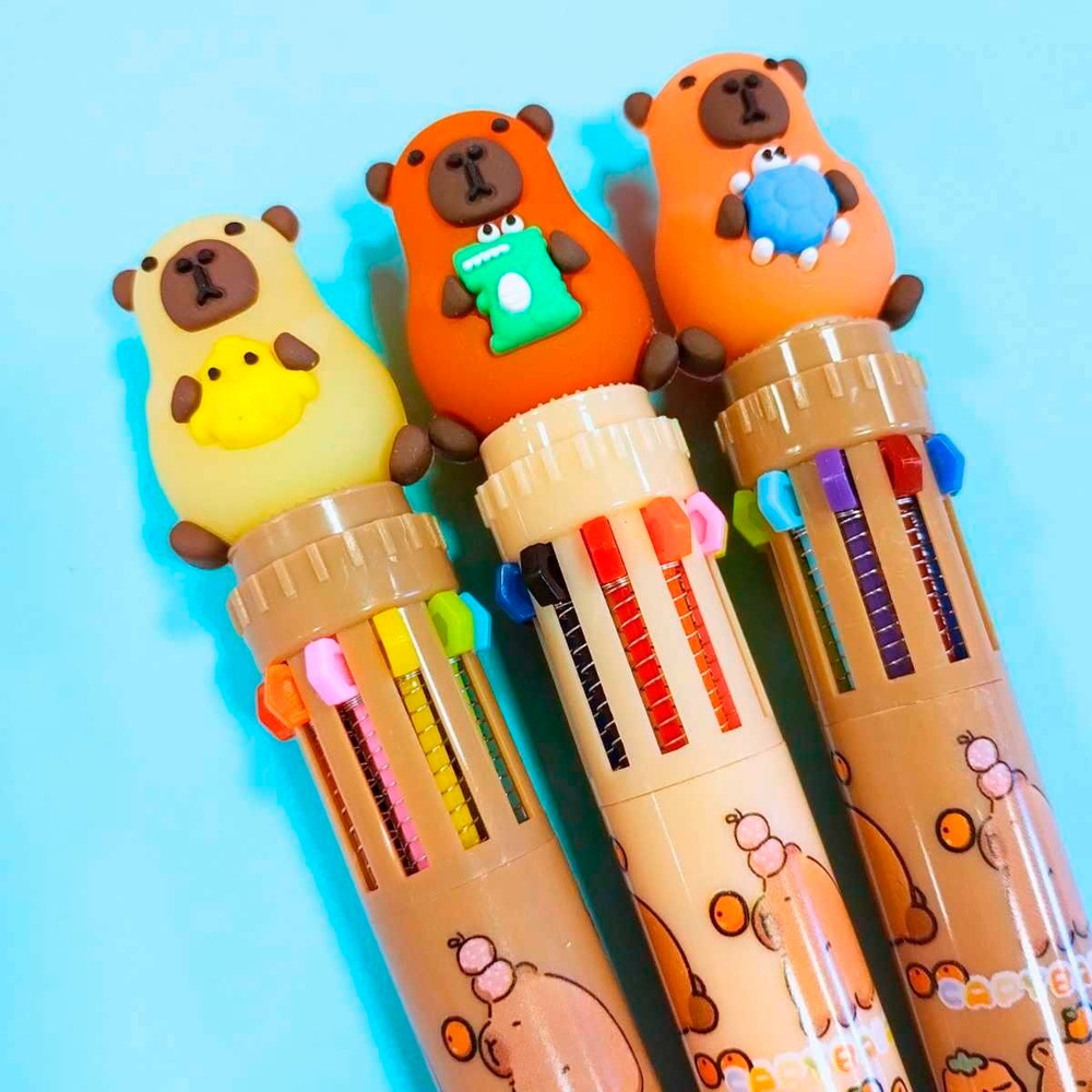Lapicera Bolígrafo Birome 10 Colores En 1 Capybara Capibara Carpincho