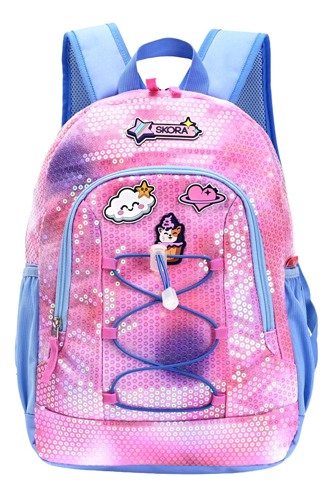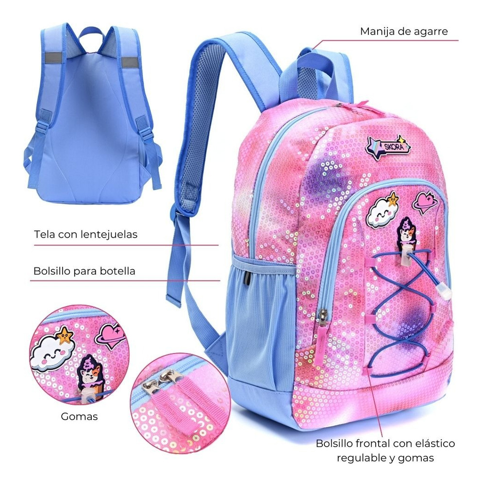 Mochila De Espalda Escolar Infantil Dos Cierres 16 pulgadas Think Happy Shine Lentejuelas degrade con Portanotebook con gomas 41x29x13.5cm 16 »