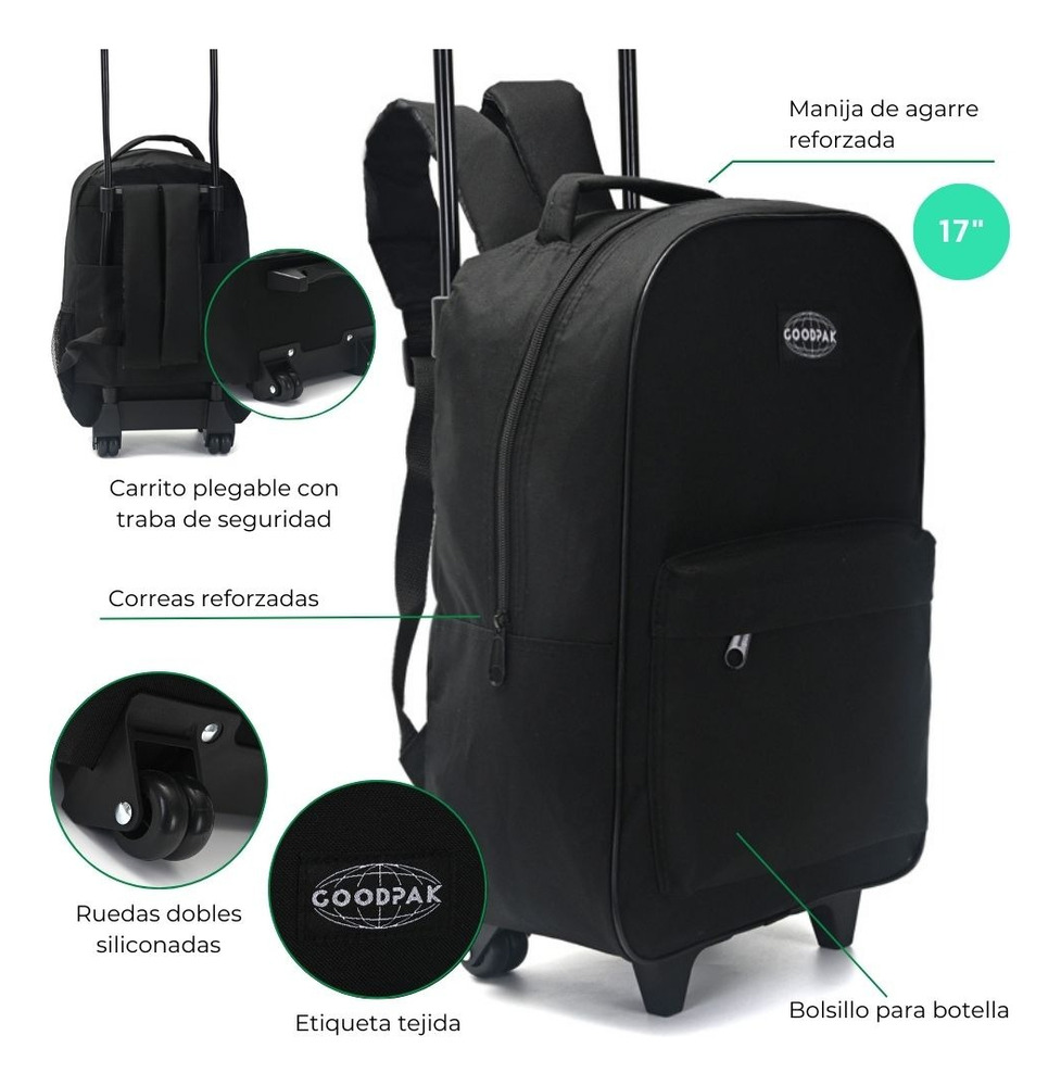 Mochila Escolar Goodpak Con Carro Rueda Doble Negra 43x30x17 cm 17 » Pulgadas
