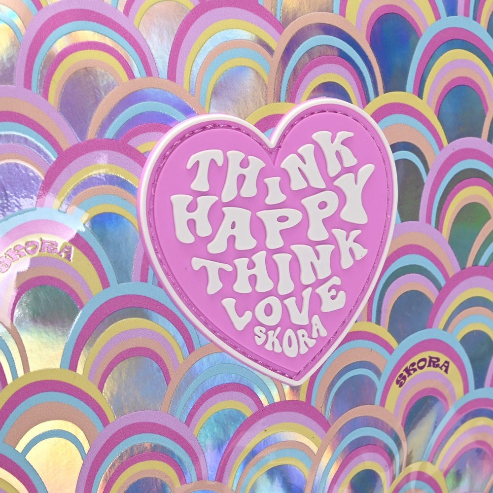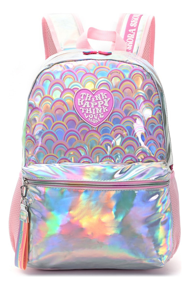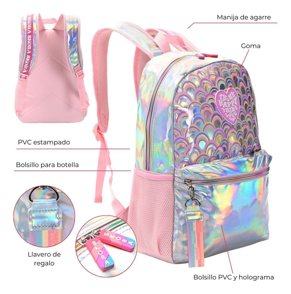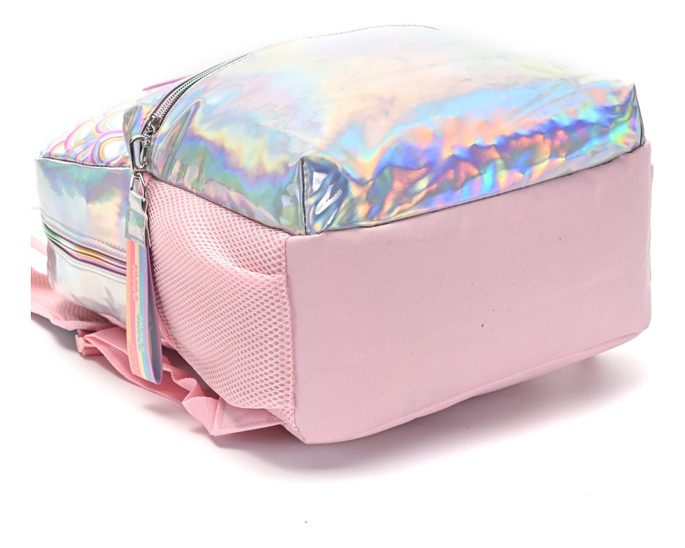 Mochila Escolar De Espalda Infantil Think Happy Prints rainbows holograma con llavero Arco Iris 32x45x15cm 18 »