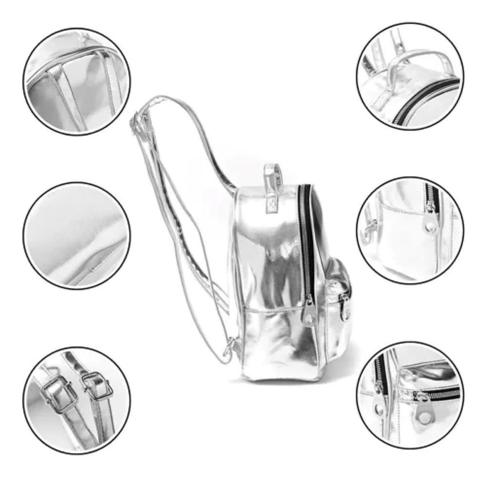La Mochila Skora NY, modelo 34143, es una mochila de espalda urbana que combina funcionalidad y estilo. Su diseño liso metalizado en color plateado la convierte en un accesorio moderno y atractivo. Está confeccionada en poliéster, un material resistente y duradero. Su tamaño compacto de 11 x 21 x 26 cm y su bolsillo de 17 x 10 x 2 cm la hacen ideal para llevar lo esencial sin sacrificar comodidad. A pesar de su tamaño mini, tiene una capacidad de 10 litros. Cuenta con manijas con seguro y tiras regulables para adaptarse a tus necesidades. Además, tiene un bolsillo frontal con cierre para mantener tus pertenencias seguras. El interior está forrado y acolchado, proporcionando una protección adicional a tus objetos personales. Aunque no es a prueba de agua ni reforzada, su diseño urbano la hace perfecta para el uso diario. Lanzada en la temporada de primavera/verano de 2023, esta mochila no tiene ruedas ni mecanismo antirrobo, pero su estilo y funcionalidad la hacen una elección popular.