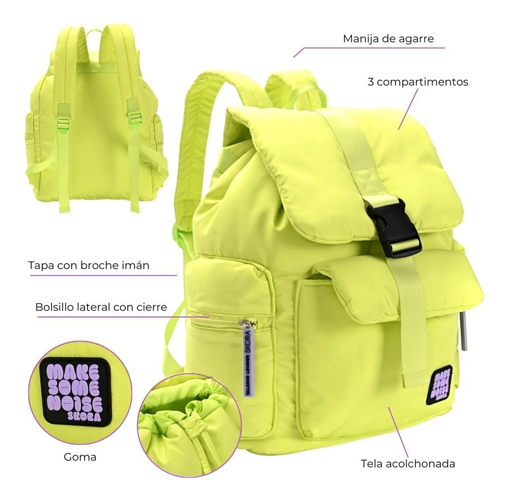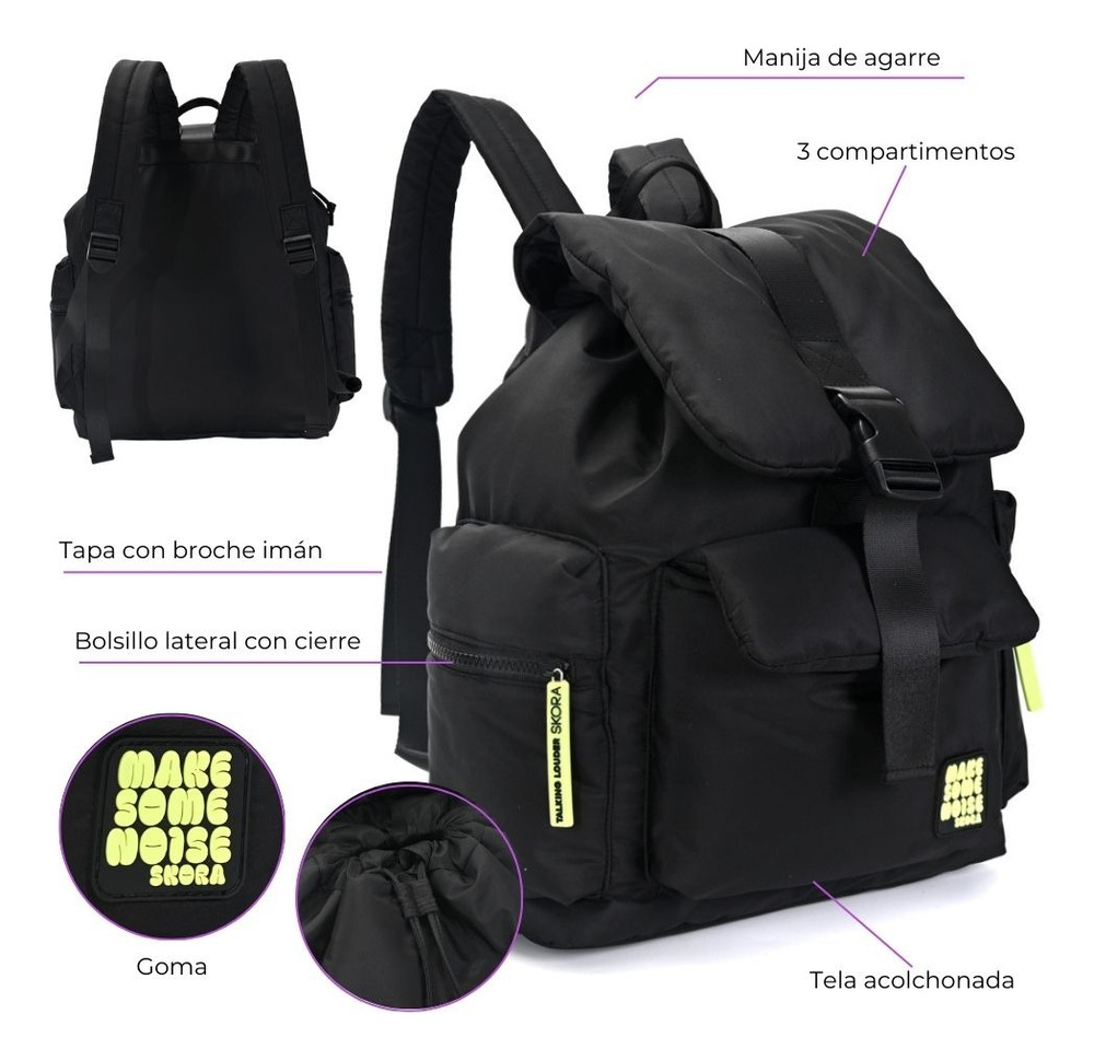 Mochila Smile Noise con tapa y goma 29x18x42cm 17 »