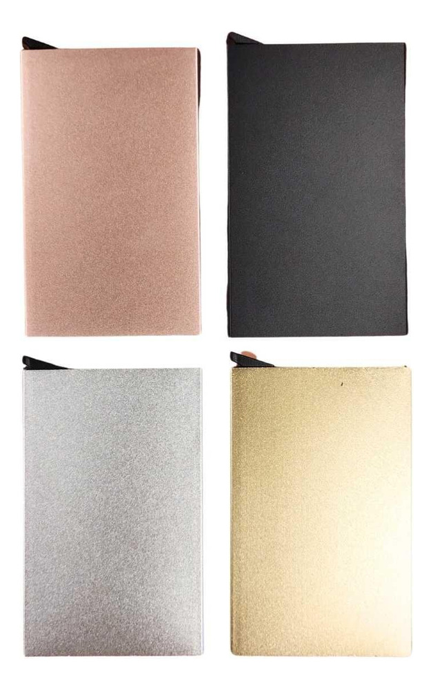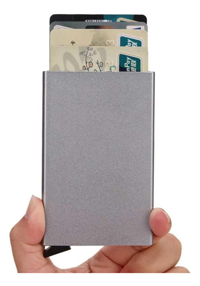Tarjetero slim metalizado, con ranura automática para tarjetas de crédito, debito, dni, carnet de conducir, etc.
