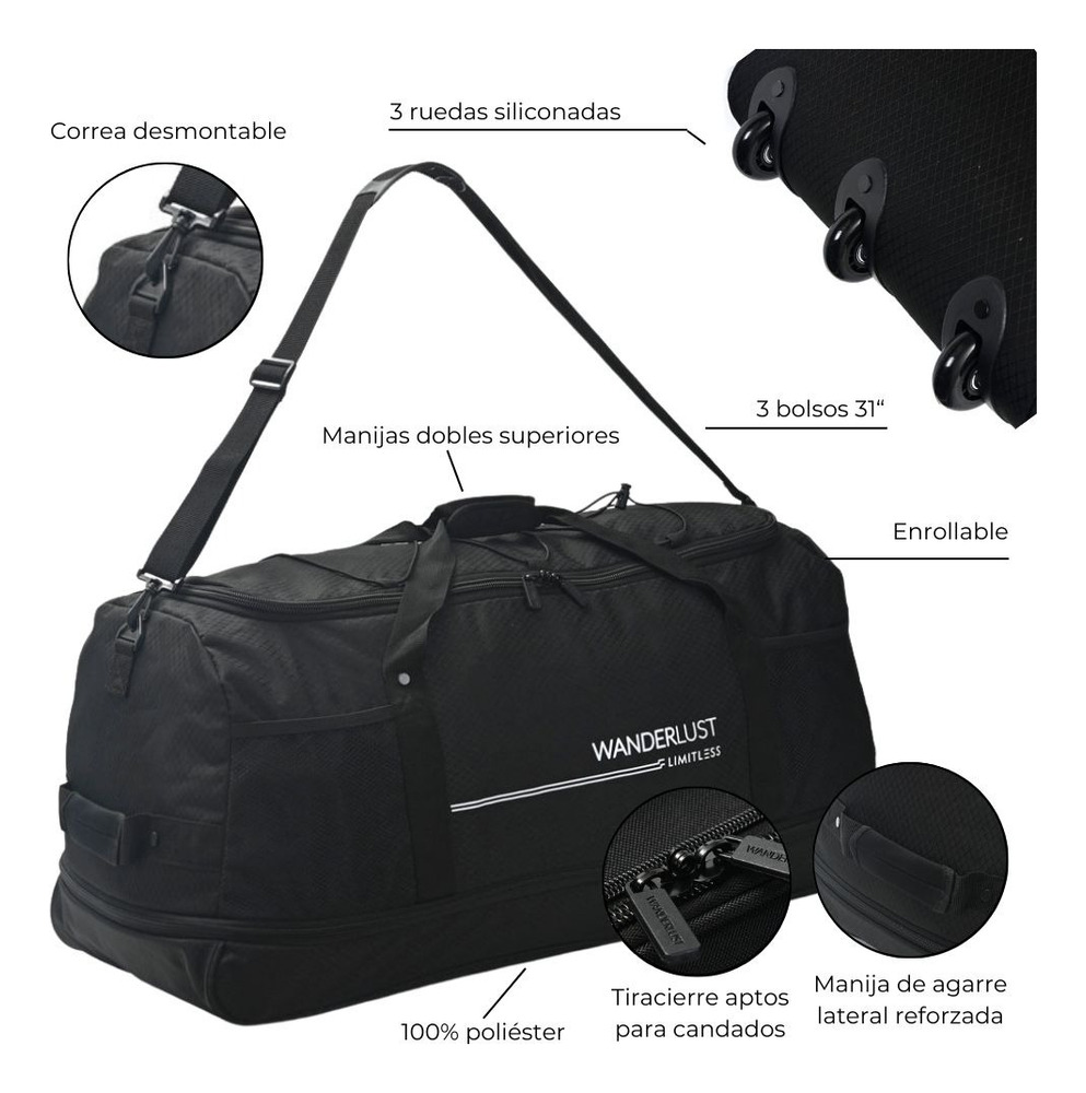 Bolso con ruedas de viaje Gimnasio Sport Urbano reforzado Wanderlust