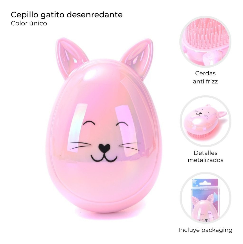 Este cepillo, inspirado en adorables gatitos, no solo es funcional, sino que también añade un toque divertido a tu rutina de belleza. Las cerdas de plástico están diseñadas para deslizarse suavemente a través del cabello, evitando tirones y daños, lo que lo convierte en una opción perfecta para todo tipo de cabellos, desde los más lisos hasta los más rizados.
