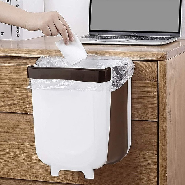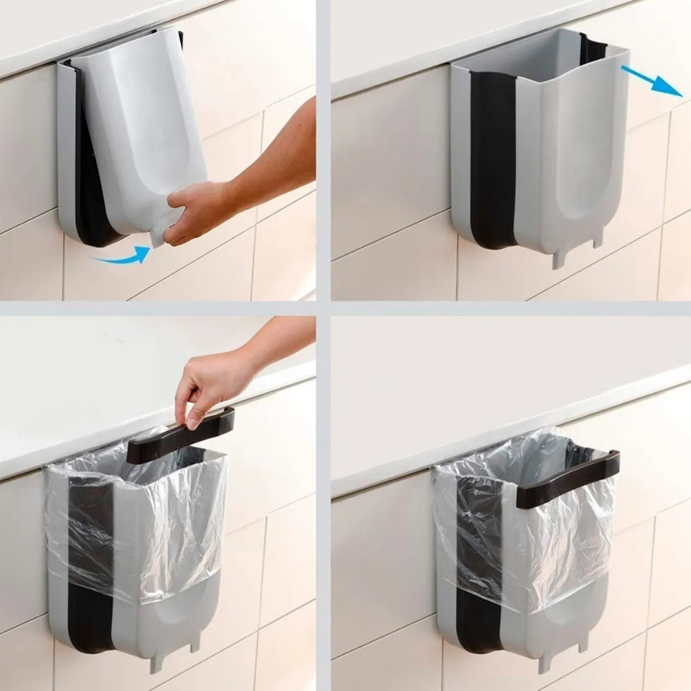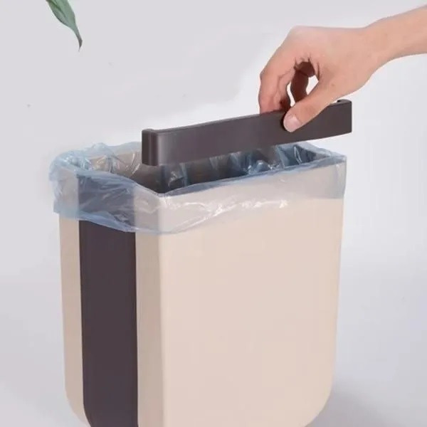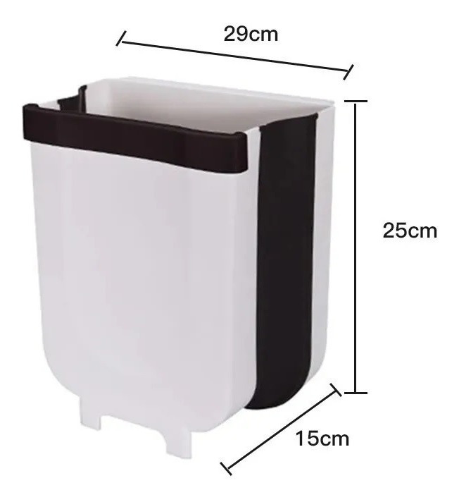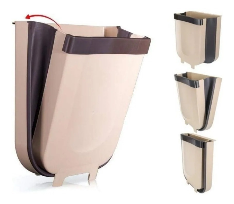 Practico tacho plegable, puede colgarse, o apoyarse fácilmente gracias a sus patitas.