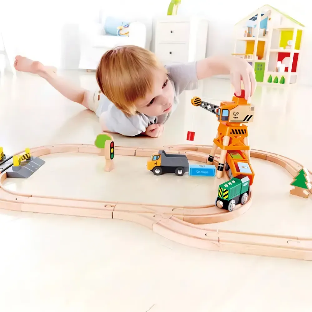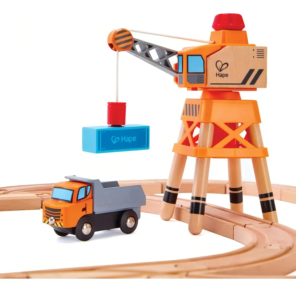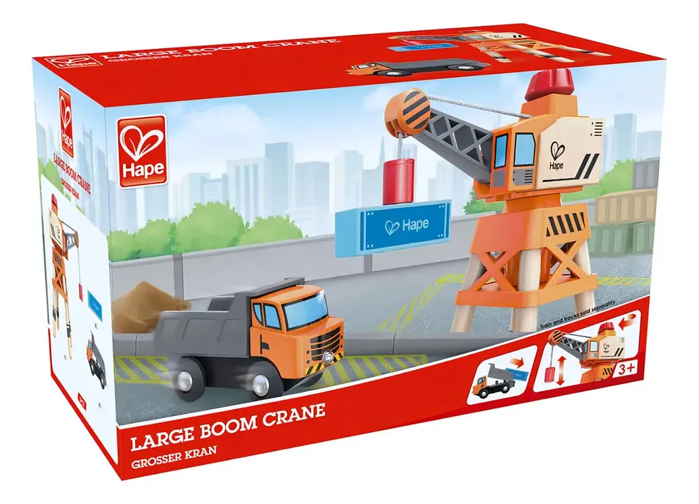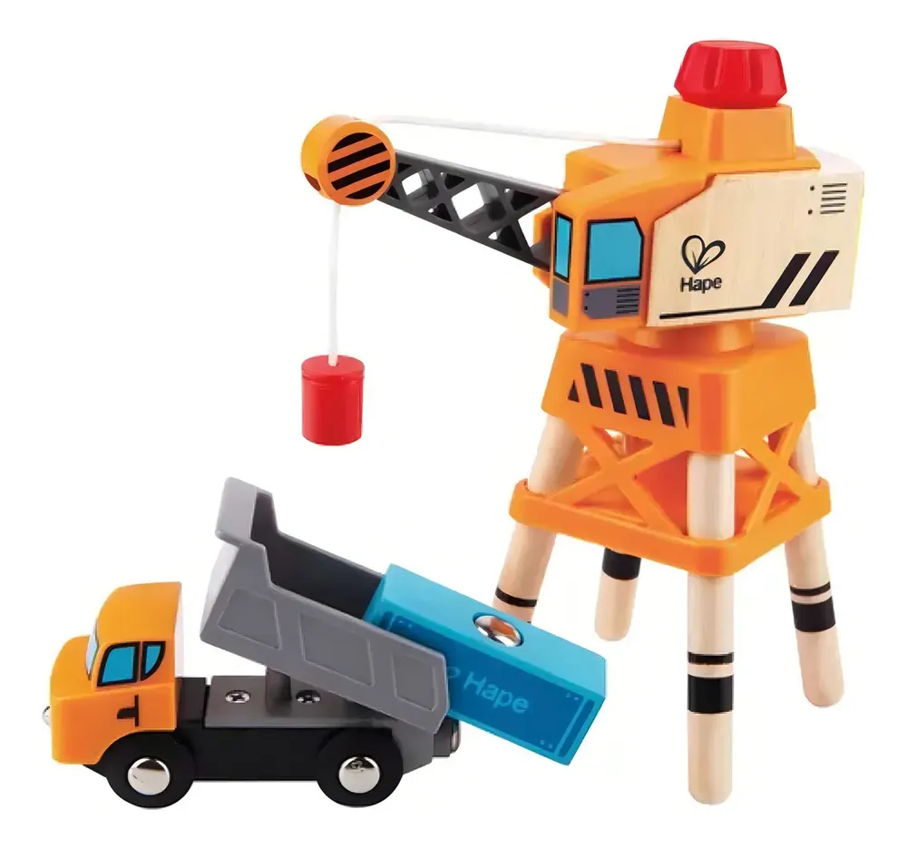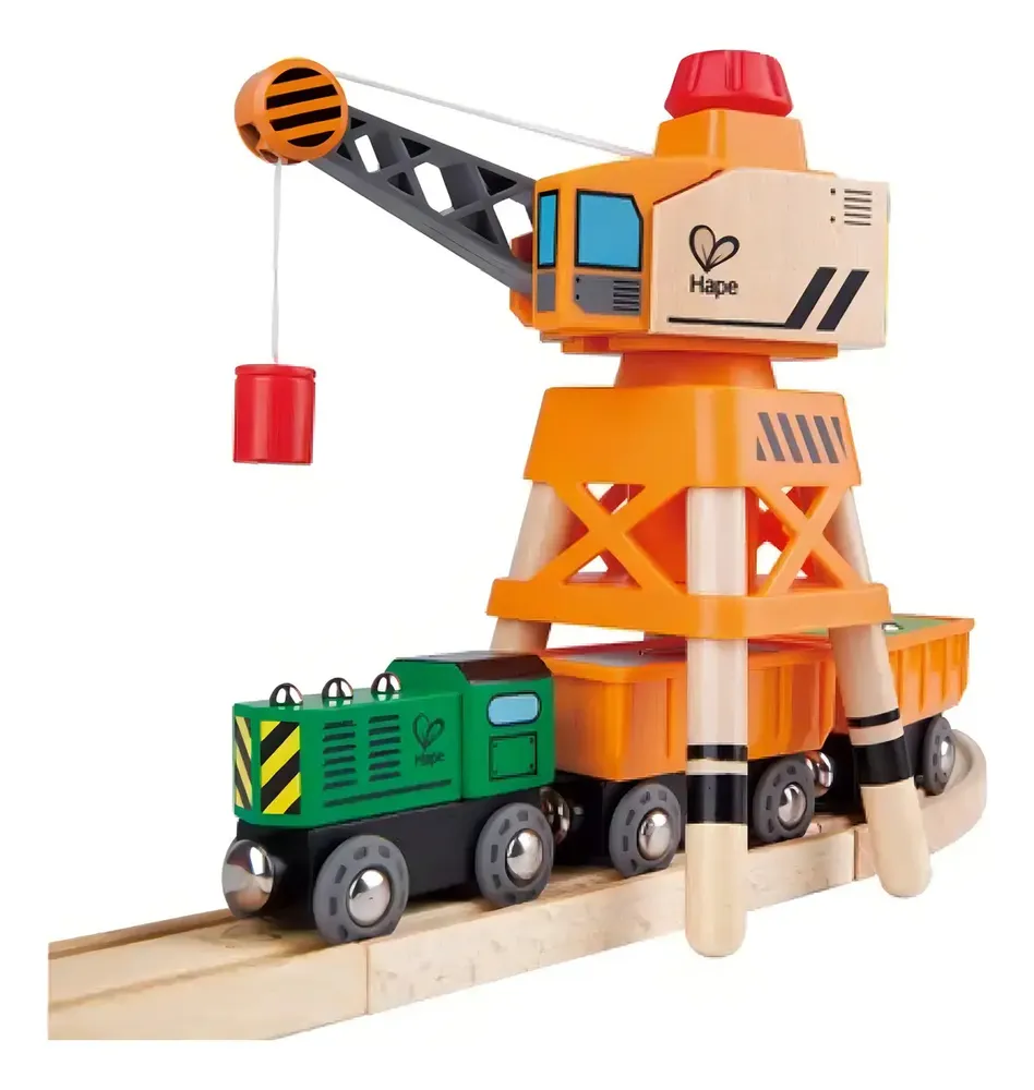 El brazo de la grúa puede girar 360 grados y hace un ruido de «clic» a medida que la giras. Las patas de la grúa son lo suficientemente anchas para que las vías y los trenes puedan pasar por debajo.