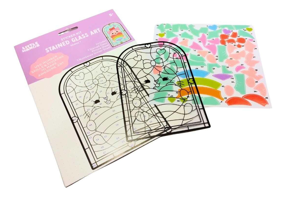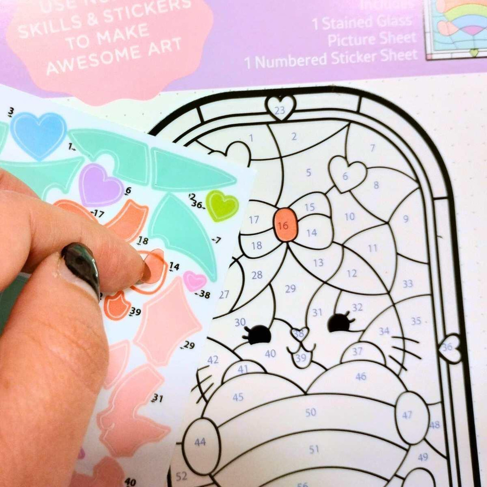 Simplemente pega las pegatinas siguiendo los números de muestra en la parte posterior del paquete para crear hermosas obras de arte estilo vitral. Contiene pegatinas transparentes de diferentes colores, lo que te permite crear una obra de arte con un solo patrón. ¡Puedes exhibir el producto terminado!