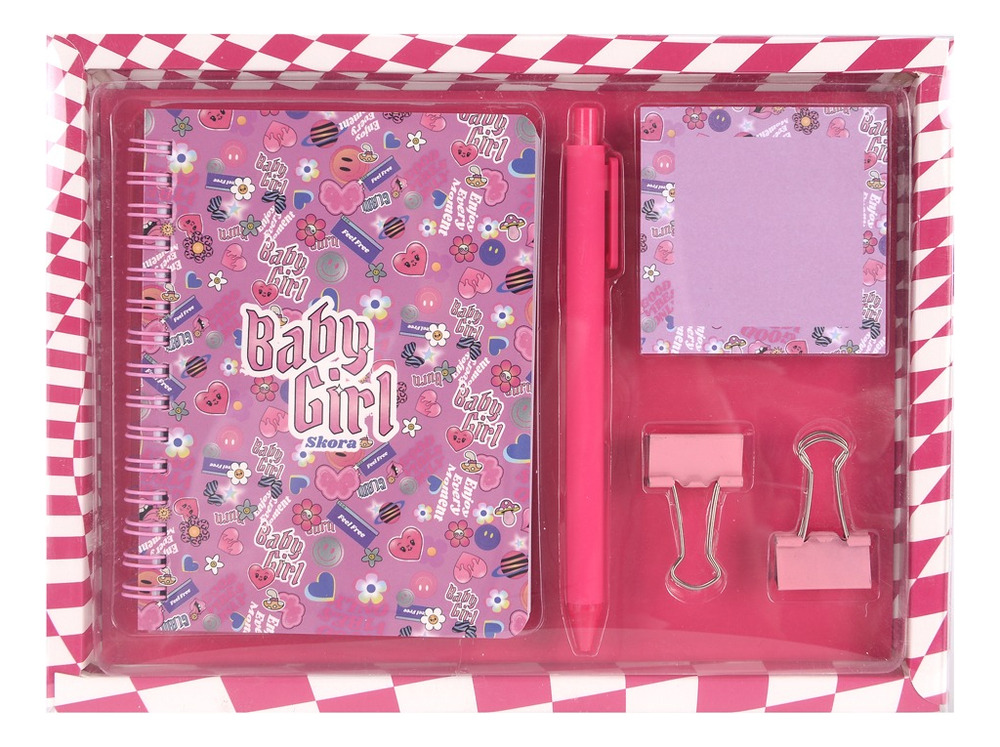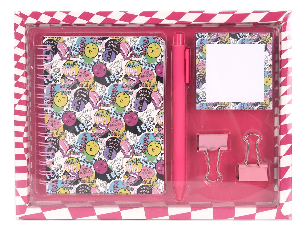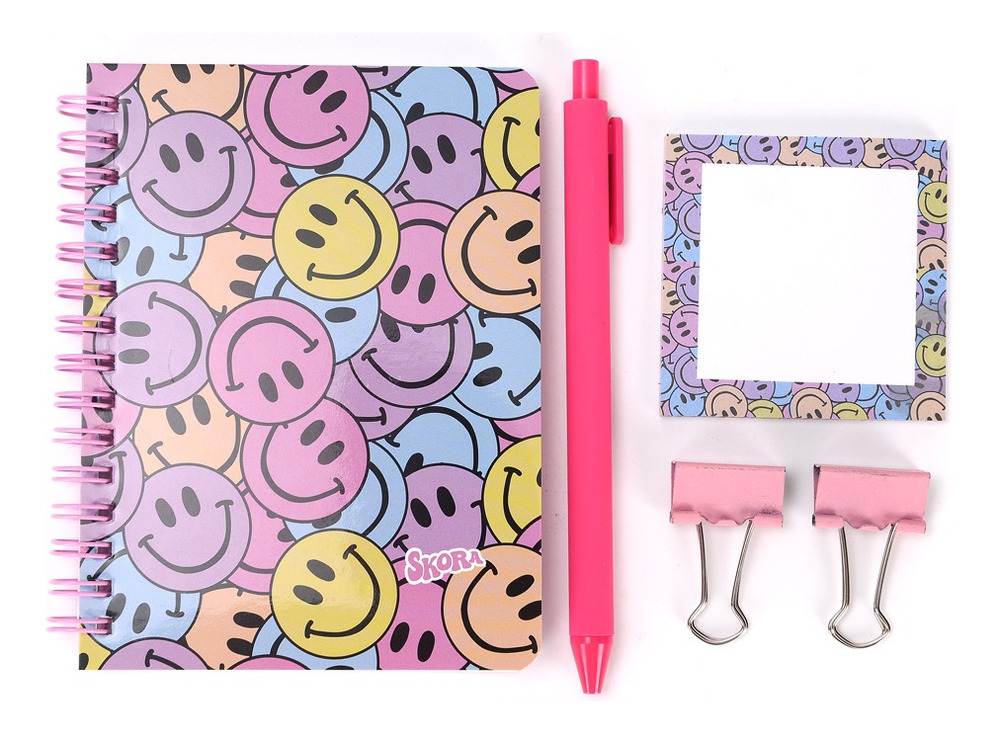 KIT SET ESCOLAR CUADERNO + LAPICERA + ANOTADOR + PAR DE GANCHITOS SKORA