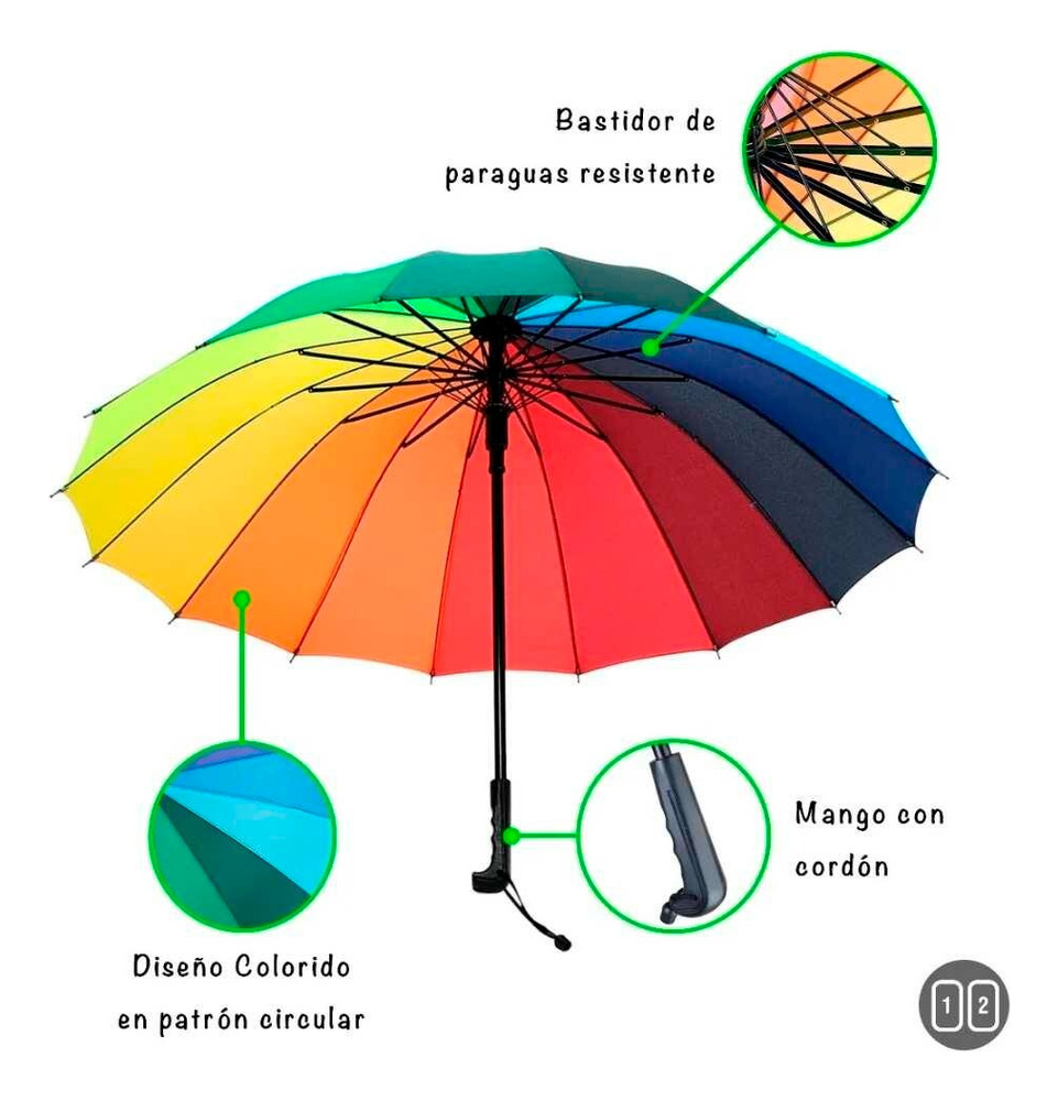¡Haz que la lluvia sea más divertida! Nuestro increíble paraguas de colores arco iris; especialmente diseñado para que los niños puedan sostenerlo fácilmente. Este paraguas es un regalo divertido y práctico para los niños.