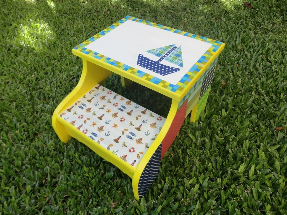 DIVINOS BANQUITOS ESCALERA INFANTILES A PEDIDO DECORADOS EN DECOUPAGE