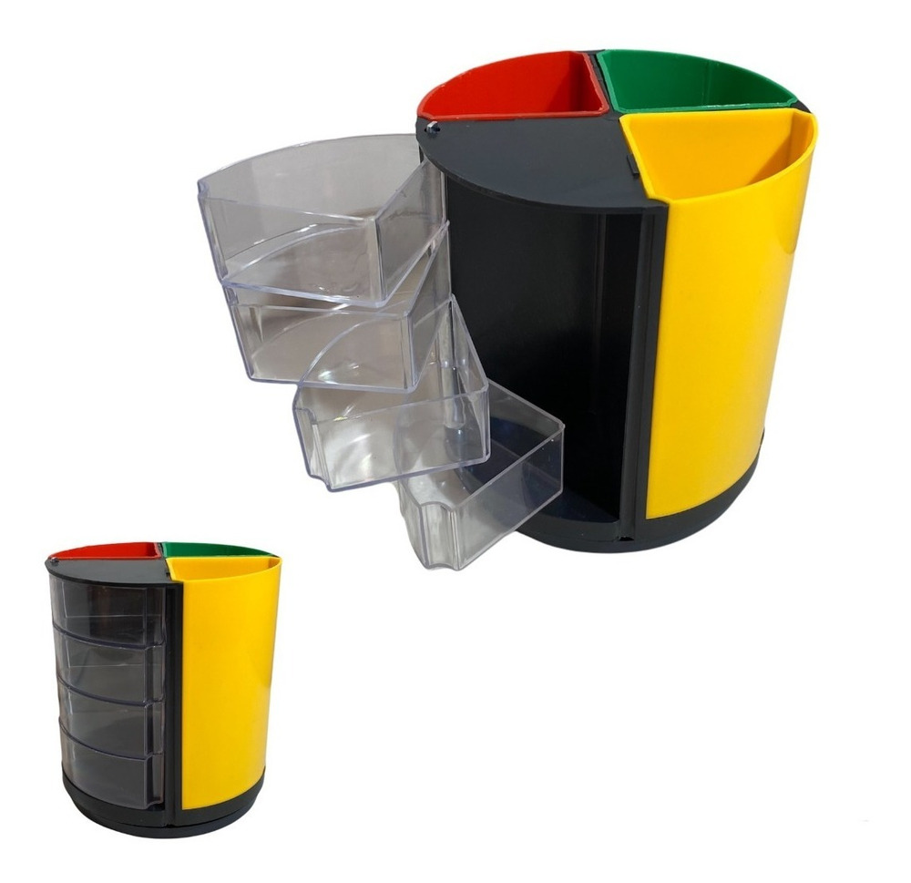 Portalapiz Organizador Giratorio 3 Divisiones + Porta Clip o Ganchos Para Lapices Utiles Colores