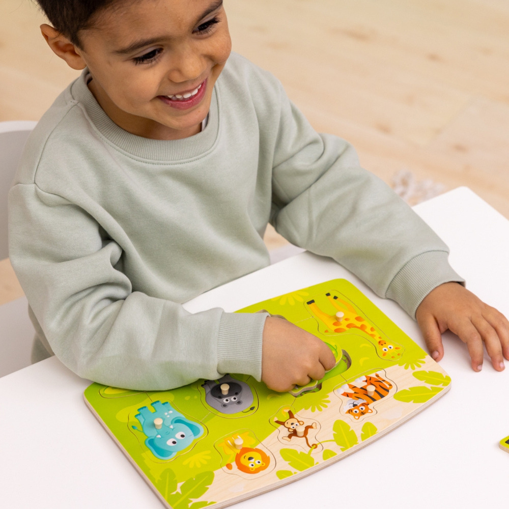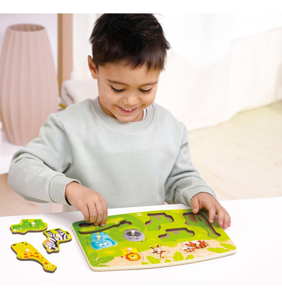 ¡Las tardes de lluvia van a ser las mejores! Con el rompecabezas Hape Animales de la Selva vas a disfrutar de largas horas de entretenimiento asegurado. Además, ejercitarás la mente al incrementar tu concentración y desarrollar tu creatividad. Aceptá el desafío de armarlo en el menor tiempo posible, ya sea solo o trabajando en equipo con amigos o familiares.