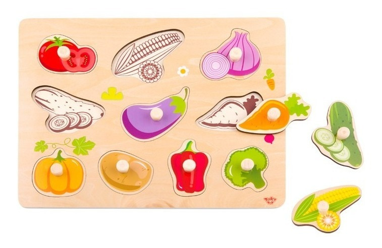 Un colorido puzzle de madera con Verduras para estimular la motricidad fina de los más chiquitos.