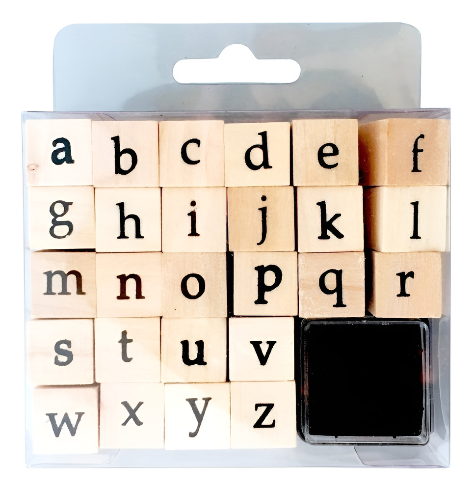 Set de 26 sellos de abecedario en minúscula de Madera con Almohadilla.