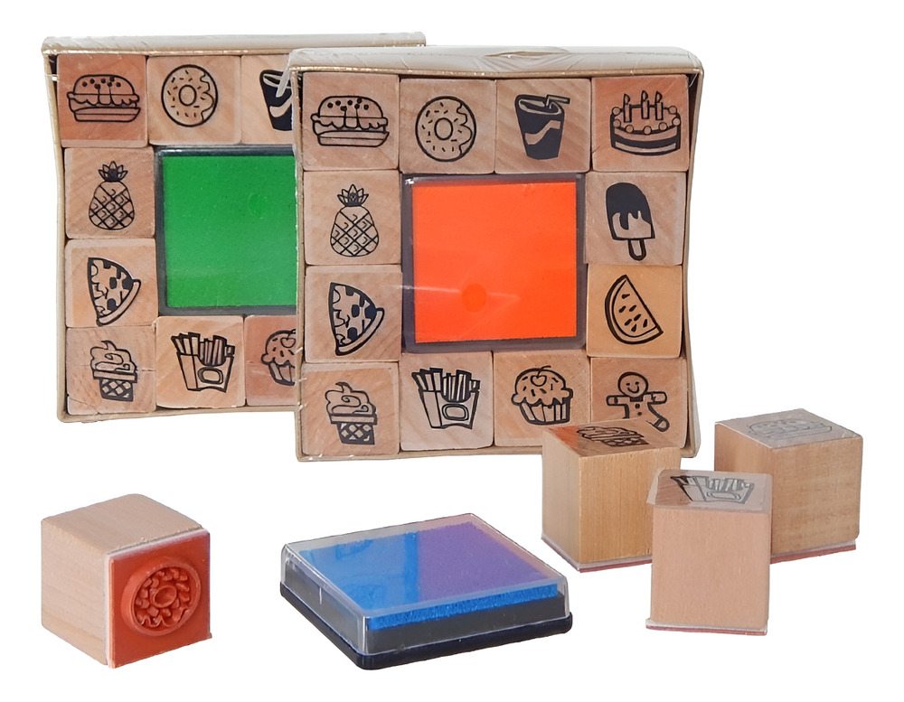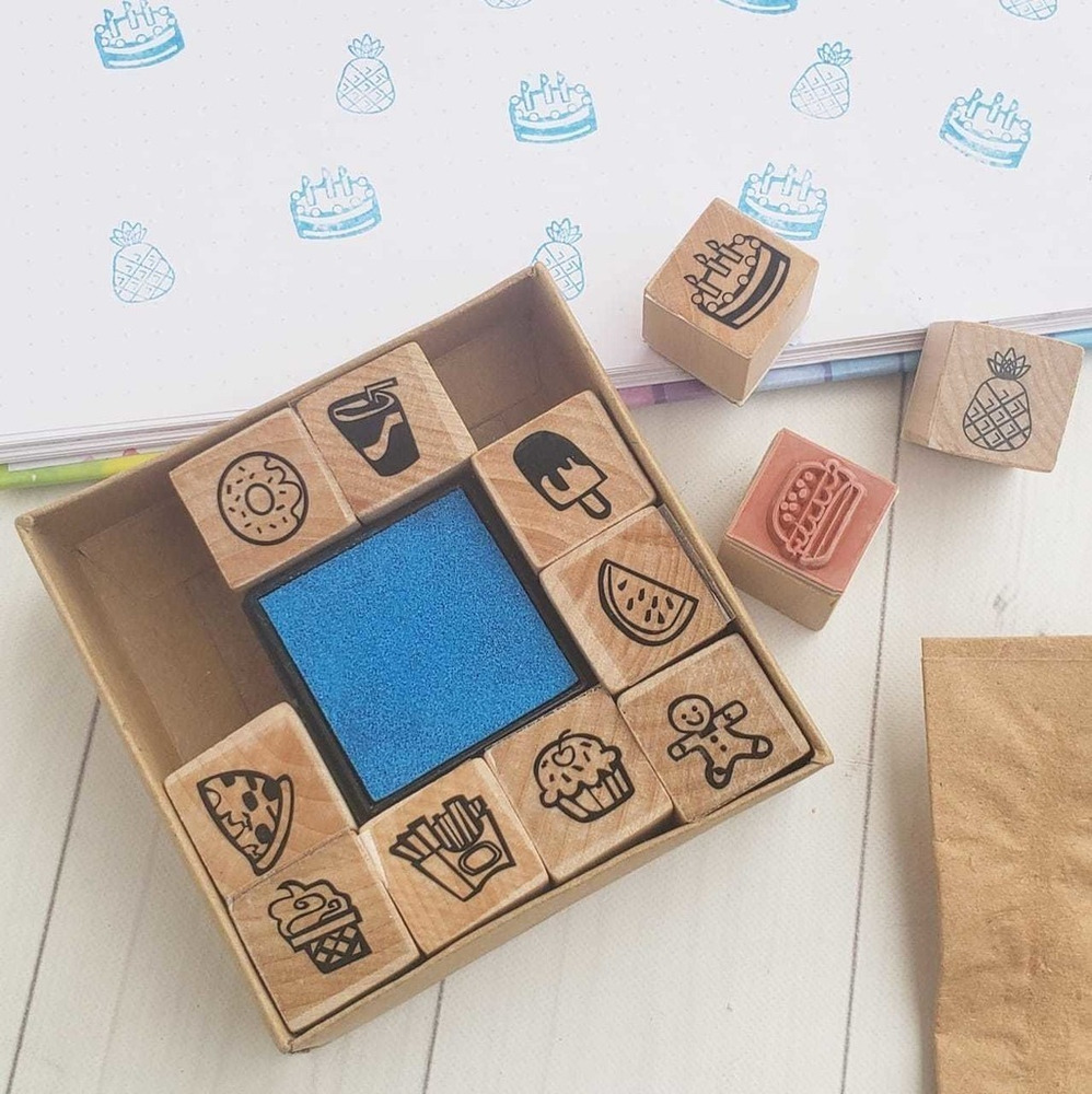 Set de 12 Sellos diferentes diseños de Madera con Almohadilla.