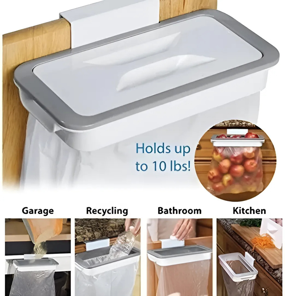 Soporte para bolsa suspendida de residuos, con clip de montaje en cualquier puerta, cajón con hasta 18 mm Max de ancho.