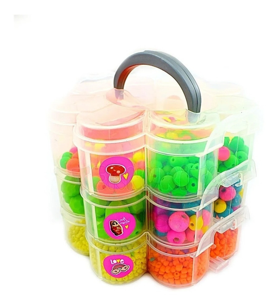 Divertida Valija en forma de margarita con 3 pisos de tanza y mostacillas para armar tus propias joyas fusionando juego, creatividad y diseño!