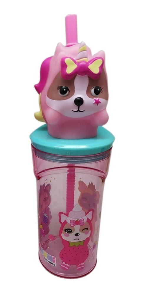 Vaso Jarro Taza Botella Infantil Figura 3D Simones Estatuilla Sofía Con Pajita